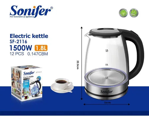 Hervidor eléctrico inalámbrico: Apagado automático, protección contra hervido en seco y construcción de acero inoxidable y cuerpo de vidrio. Con base